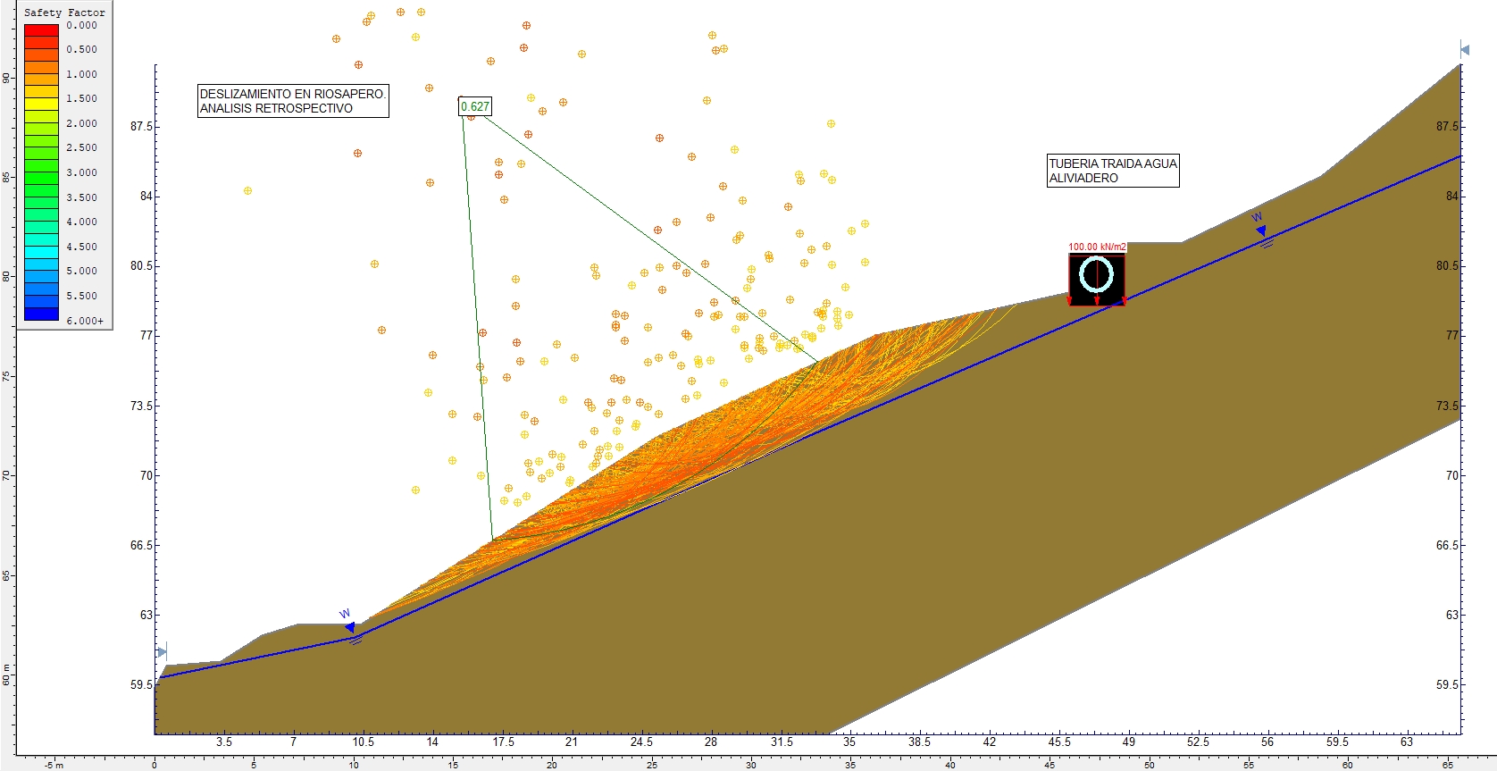 A partir del análisis retrospectivo del deslizamiento acaecido, en base a la inspección geotécnica del mismo, se han fijado las parejas de valores en cuanto a cohesión y ángulo de fricción de los materiales coluvio-eluviales que conforman el material deslizado, estableciendo su estabilización para un factor de seguridad al deslizamiento de 2,00.