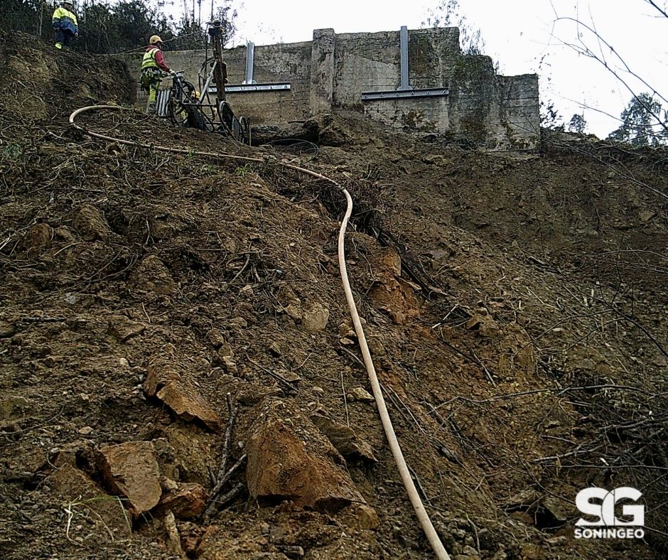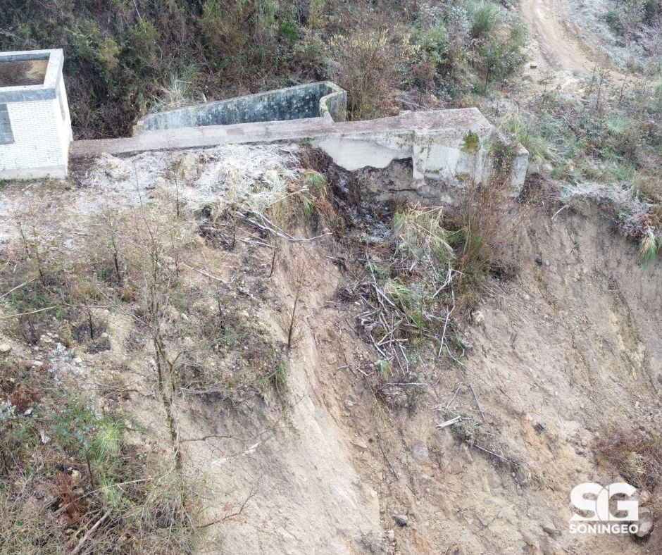 El departamento de Sondeos y Geotecnia de Soningeo ha proyectado y se encuentra en fase de ejecución la estabilización de un argayo que se desencadenó el pasado mes de enero y que comprometía la traída de agua a Santander, en la localidad de Riosapero (Villaescusa).