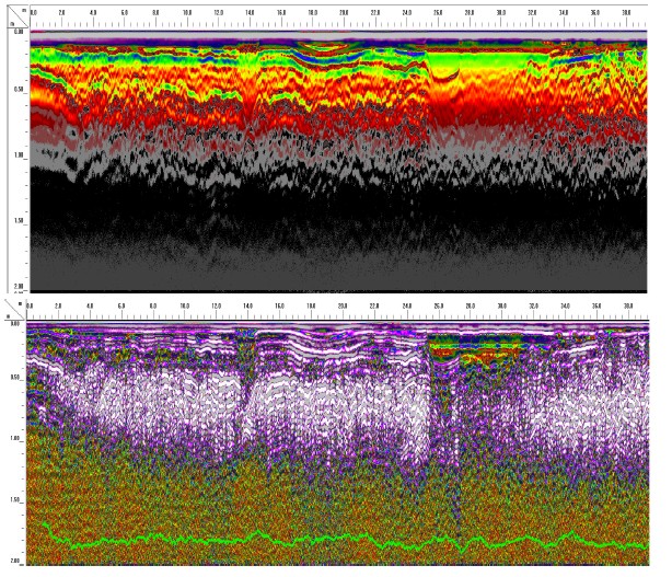 Dado el estado de la zona y el peso de la maquinaria, así como la presencia de servicios enterrados en la zona cuyo trazado se desconoce, Soningeo ha propuesto a la D.O. barrer la zona mediante el empleo de GeoRadar, con objeto de obtener una imagen del subsuelo de la zona de trabajo y determinar su estado, así como el trazado de dichos servicios, de forma que se trabajo con unas medidas de seguridad y salud adecuadas.