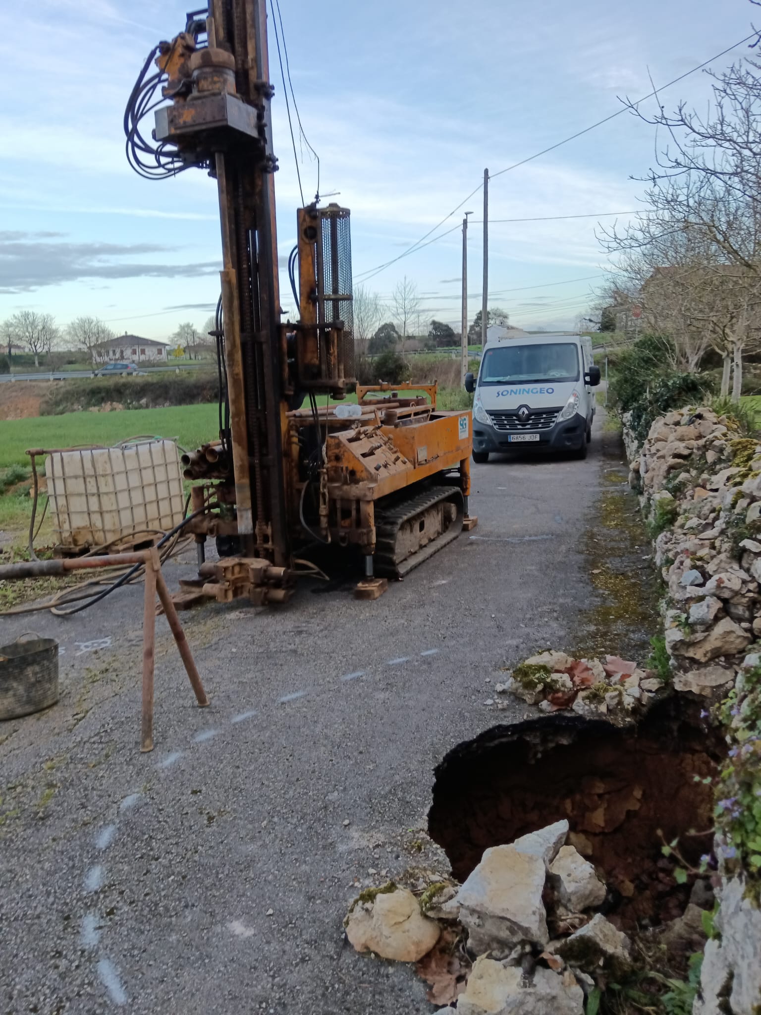 El Servicio de Vías y Obras de la Consejería de Fomento, Ordenación del Territorio y Medio Ambiente vuelve a confiar en los servicios de Geotecnia de Soningeo para determinar las características del subsuelo del camino municipal del barrio Quintana, en la localidad de Cóbreces, perteneciente al Ayuntamiento de Alfoz de Lloredo, que presenta hundimientos métricos y presencia de soplaos que comprometen su seguridad.