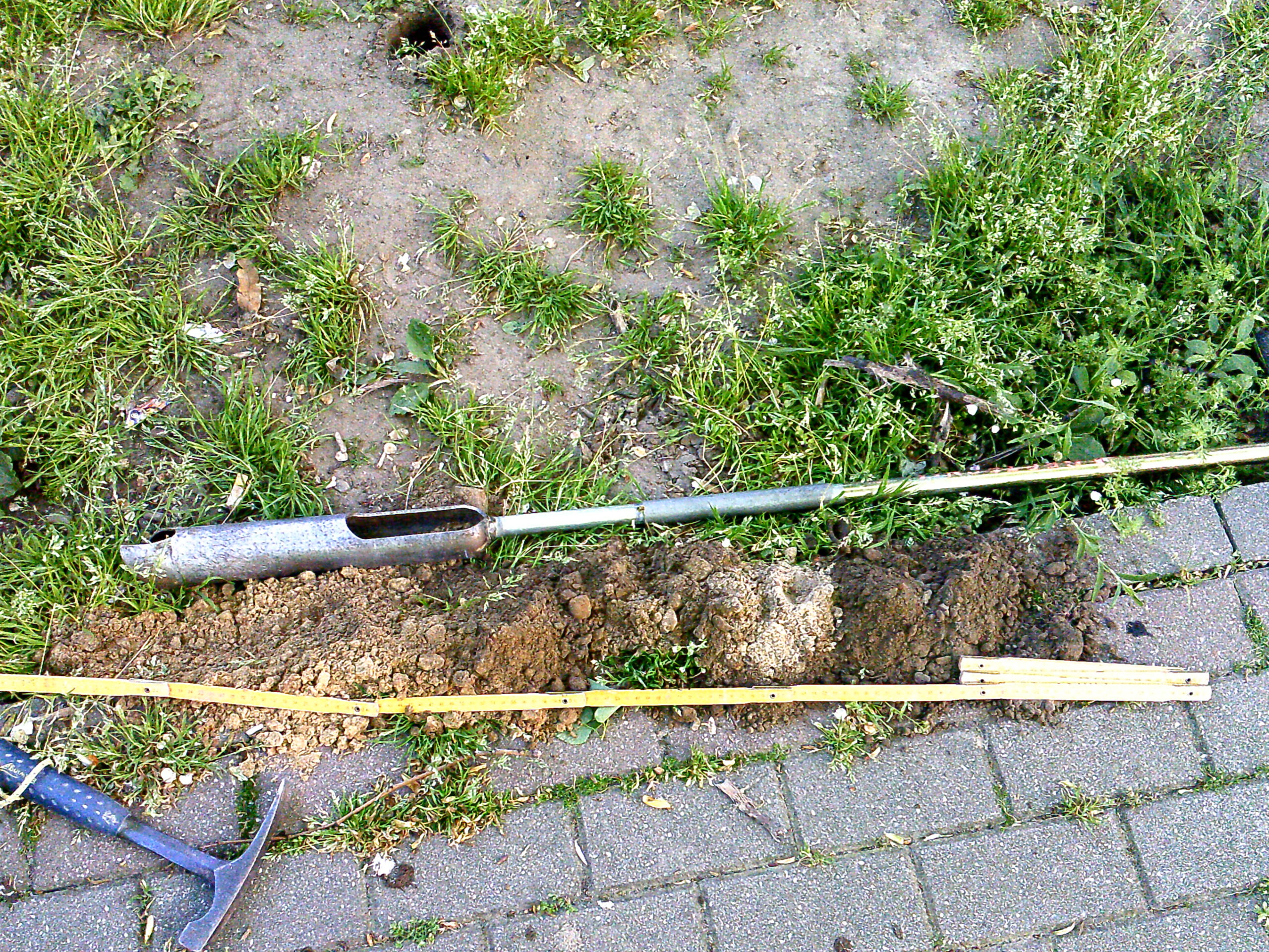 Una vez verificado el trazado de servicios enterrados que discurren por la zona de trabajo, tales como conducciones de agua, luz, fibra y telefonía, se ha realizado una toma de muestras mediante barrena de perforación manual tipo Eijkelkamp hasta 1,20 m, con toma de muestras inalteradas, a las cuales de les esta practicando distintos ensayos de mecánica de suelo y química.